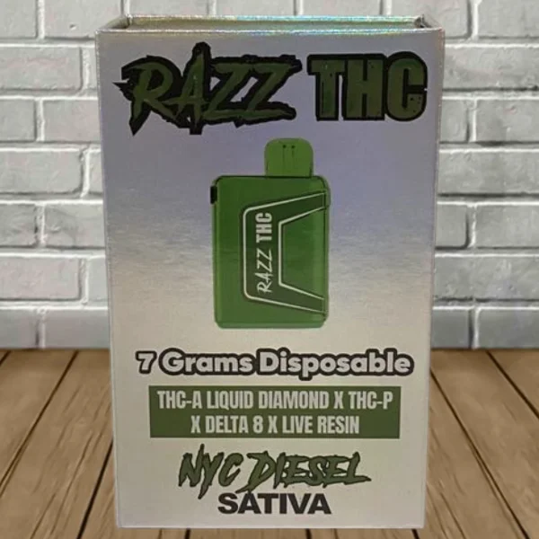 Razz THC Live Resin THCa Liquid Diamond Blend Disposables contains an ultra-potent 7g blend of THCa Liquid Diamonds, Delta 9 THCP, Delta 8 THC, and live resin terpenes. This powerful blend offers users the best of both worlds, promising hard-hitting and long-lasting body and mind effects!